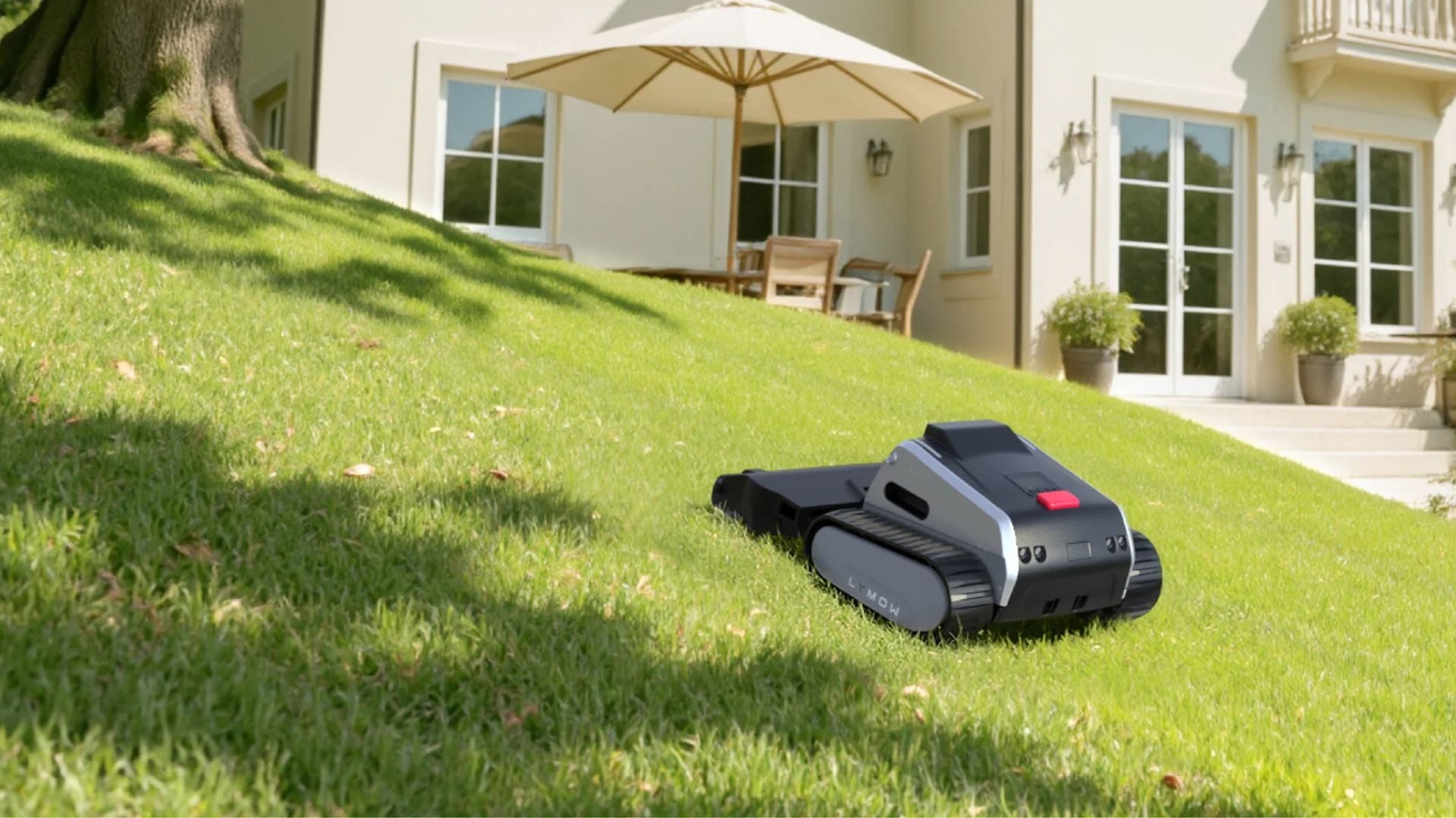 It automatically detects rain and pauses mowing, then resumes once conditions are dry for an even, clean finish.
